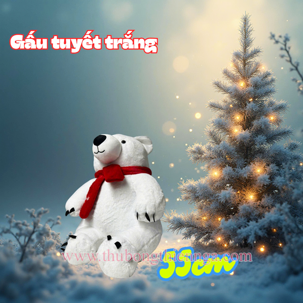 Hình ảnh chú gấu bông gấu tuyết trắng giữa khung cảnh Giáng Sinh như gợi lên cảm giác ấm áp giữ trời đông lạnh giá, mang đến niềm vui và bình yên cho người xem.
